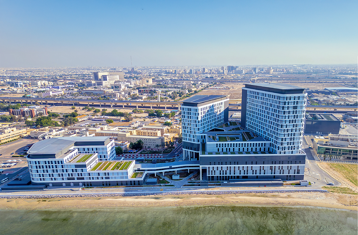 Also, the building has been provided with advanced security, surveillance and access control systems, with various other special installations. Furthermore, 64 elevators and 8 travellators are distributed throughout the sprawling campus to facilitate staff, patients and visitor movement.