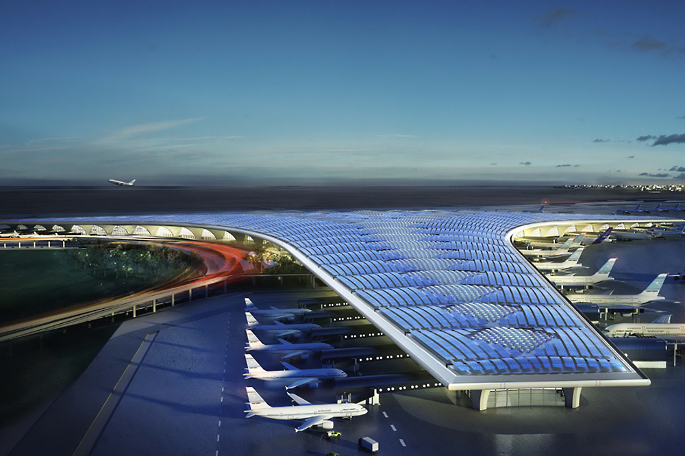 The iconic terminal, designed to attain LEED Gold certification, comprises up to 51 contact stands, of which 21 can serve Airbus A380 aircraft and is supported by parking facilities for 5,200 cars.